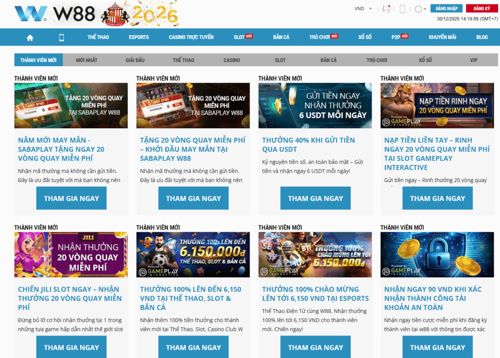Vừa gia nhập W88, tân bet thủ đã được “trải thảm đỏ” bằng loạt ưu đãi cực khủng, từ tiền cược miễn phí, vòng quay slot cho đến thưởng nạp 100% ở hàng loạt sảnh hot. Chỉ cần tạo tài khoản và xác nhận thông tin, bạn đã có ngay cơ hội chơi lớn – thắng lớn mà không cần bỏ ra quá nhiều vốn ban đầu. Những khuyến mãi nổi bật dành cho người chơi mới của W88 gồm có:
