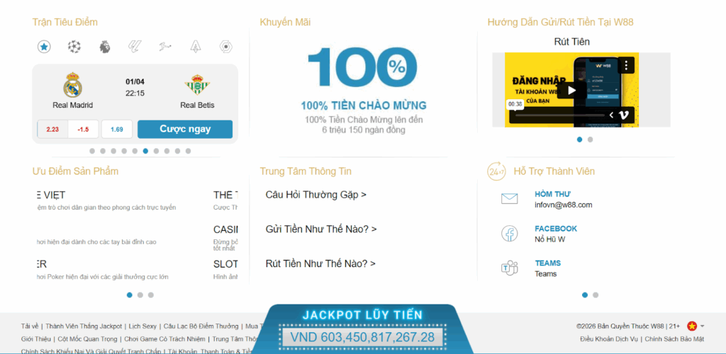 Không chỉ nổi bật về độ uy tín, W88 còn được đánh giá cao nhờ hệ sinh thái sản phẩm phong phú cùng chính sách ưu đãi hấp dẫn dành cho cả người chơi mới và thành viên lâu năm.