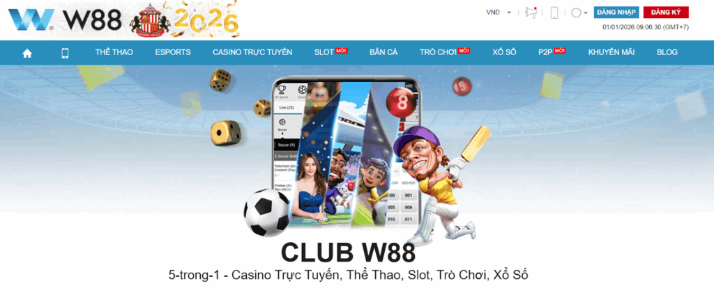 - Club W88 – 5 trong 1 tích hợp đầy đủ casino, thể thao, xổ số, slot và game giải trí, mang đến trải nghiệm cá cược trọn gói